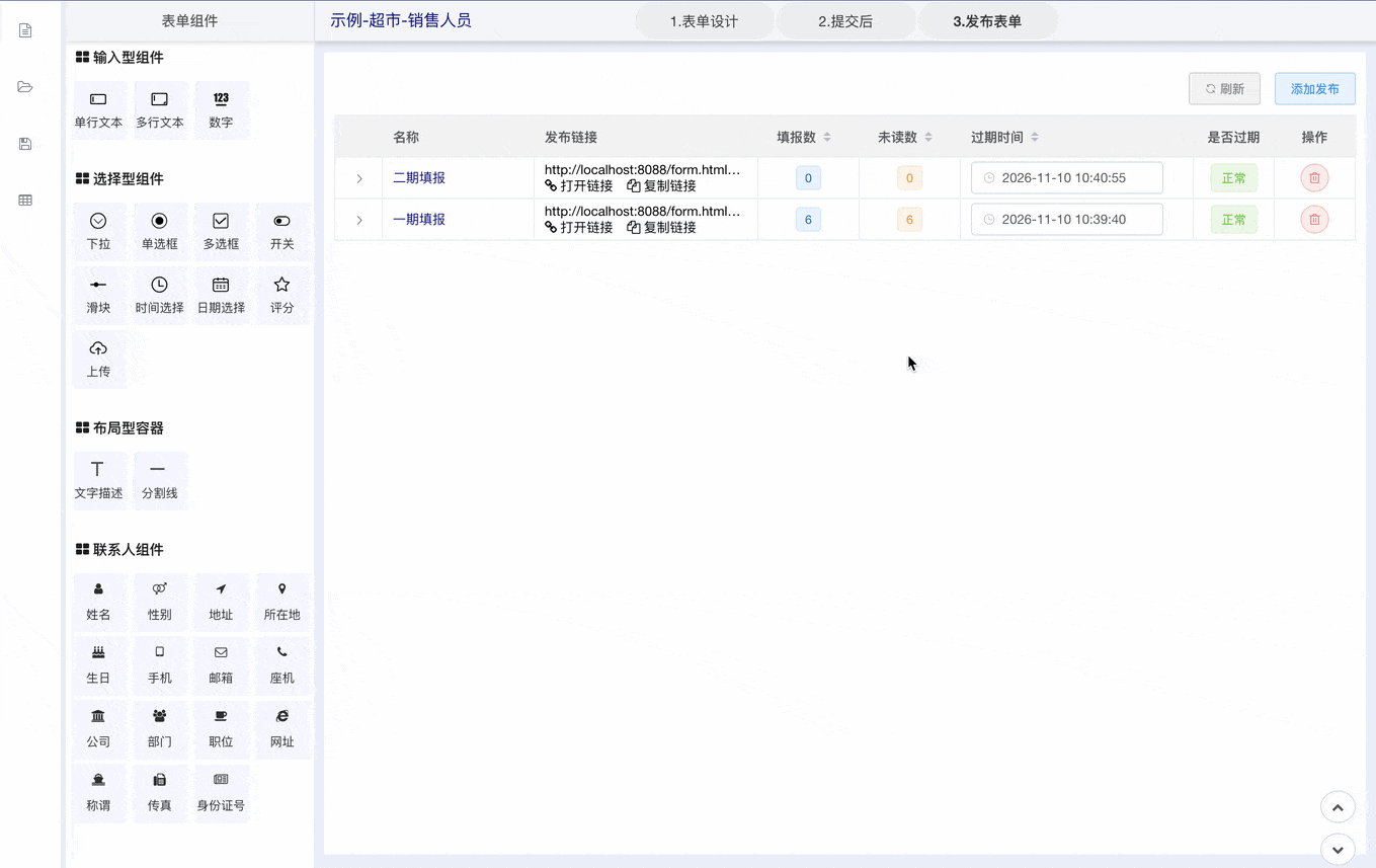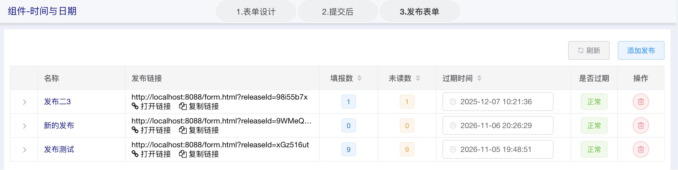 表单发布实例:是指基于同一个表单模板,在不同场景、时间或业务需求下生成的独立发布版本。