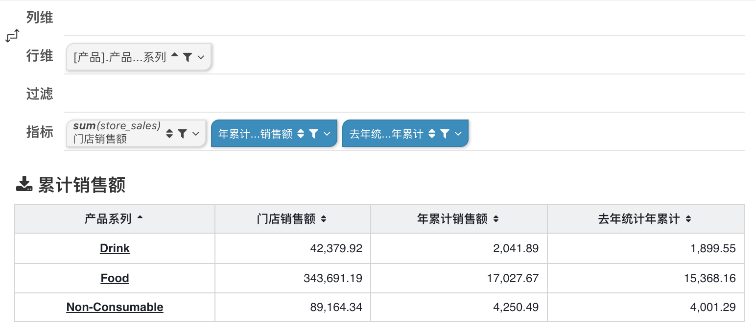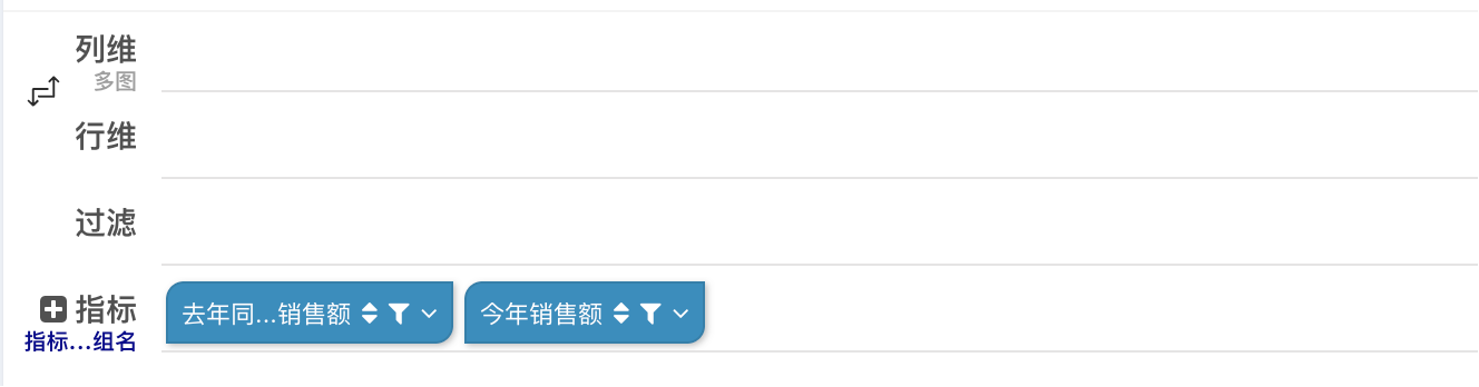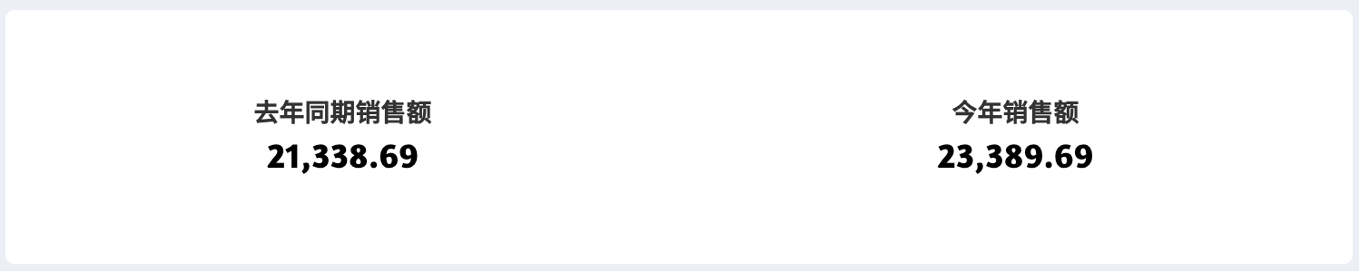 当我们在指标中包含了维度信息,如下面的指标卡,去年同期销售额、今年销售额