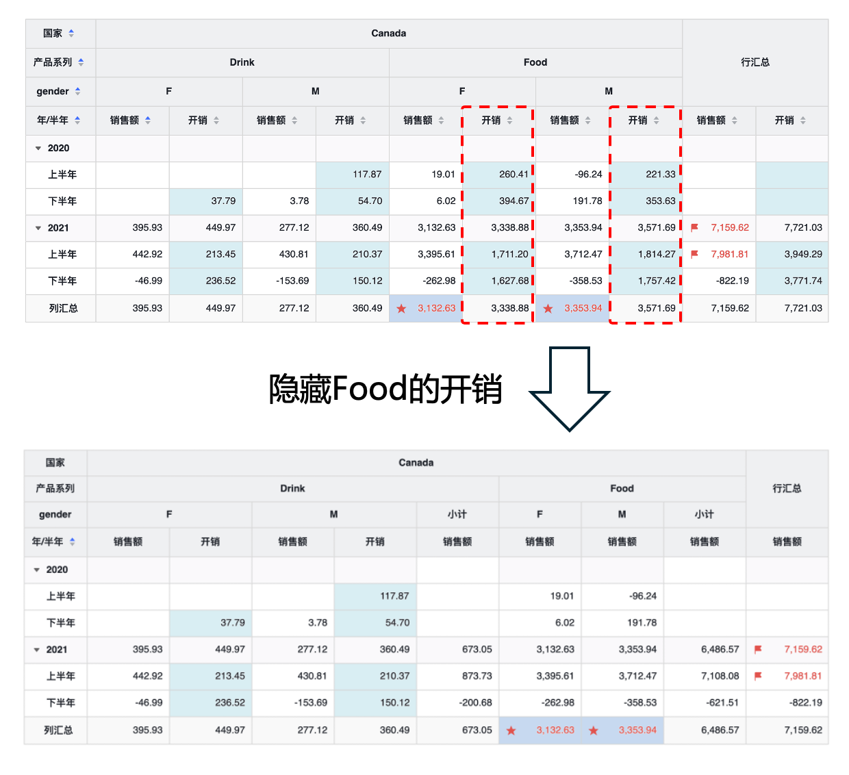 隐藏系列维度,用于按需隐藏表格中不必要的字段,优化数据展示的聚焦性: