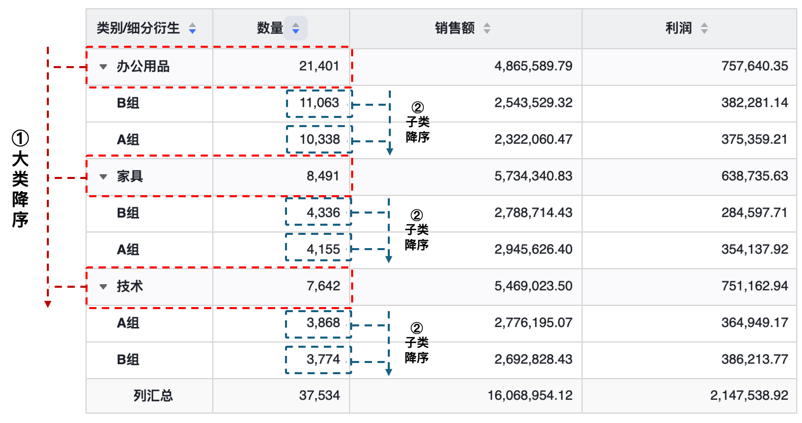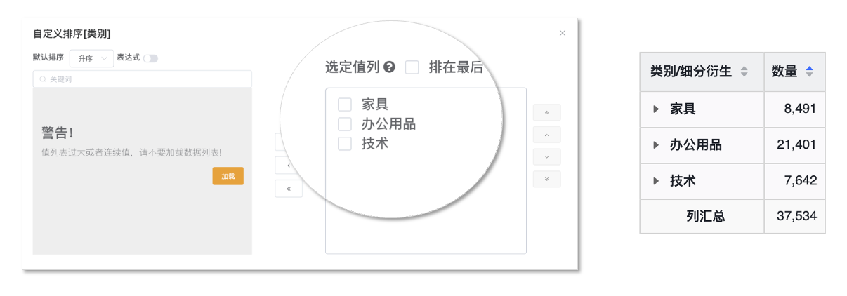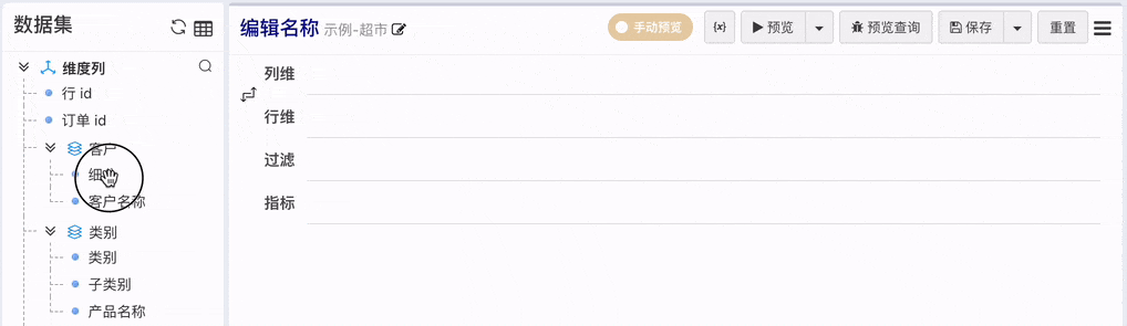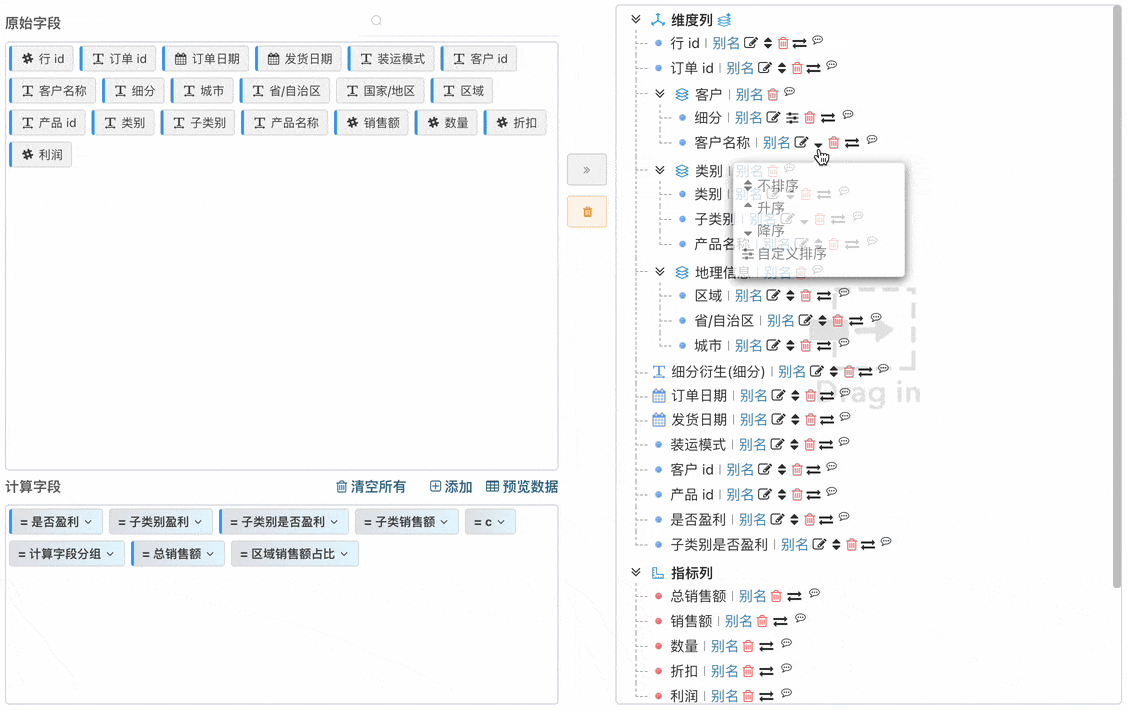 - 后续在图表设计阶段添加该维度时,将直接使用预定义排序;进行层级下钻时,也可沿用预定义规则