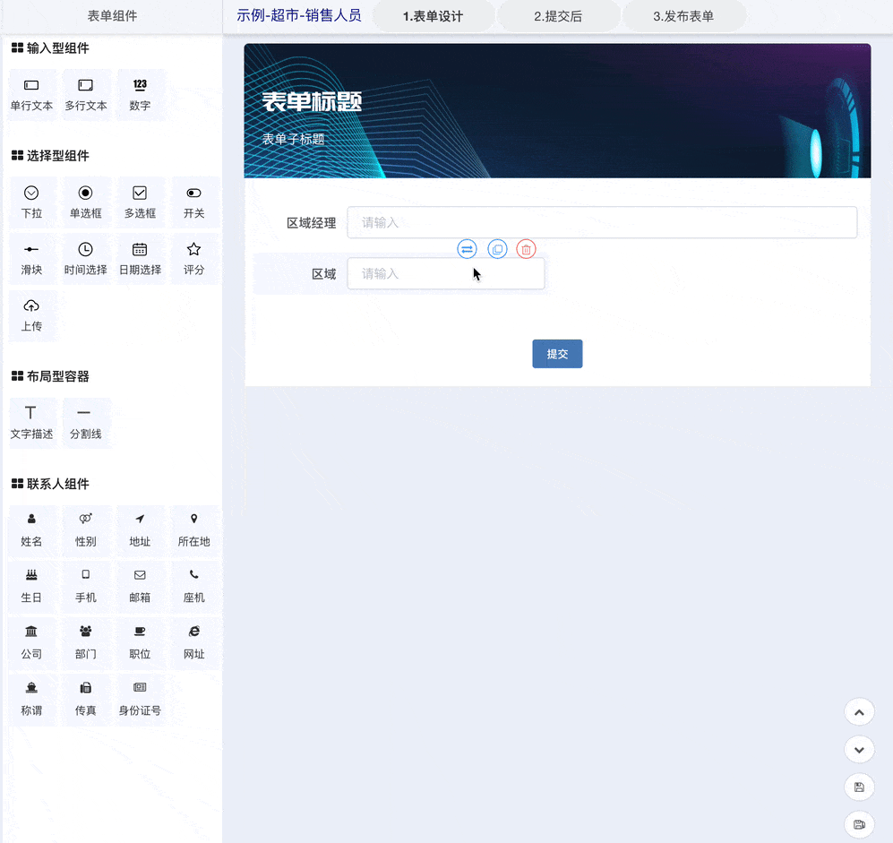 可以通过组件替换功能仅改变表单组件类型,其他通用属性不变更